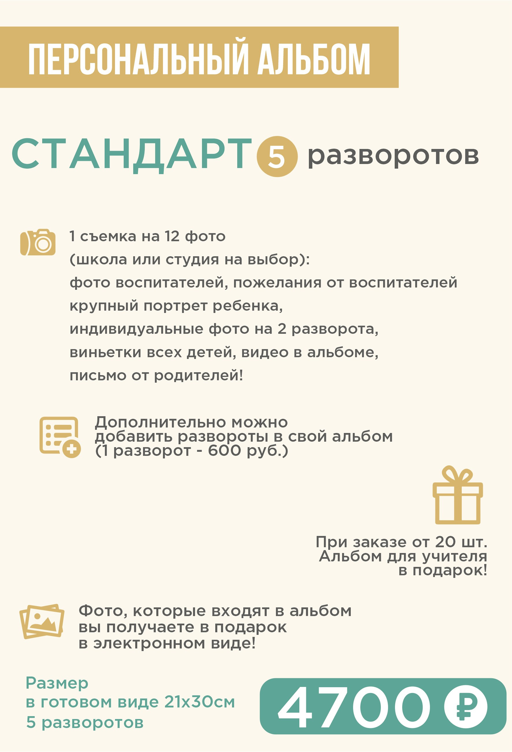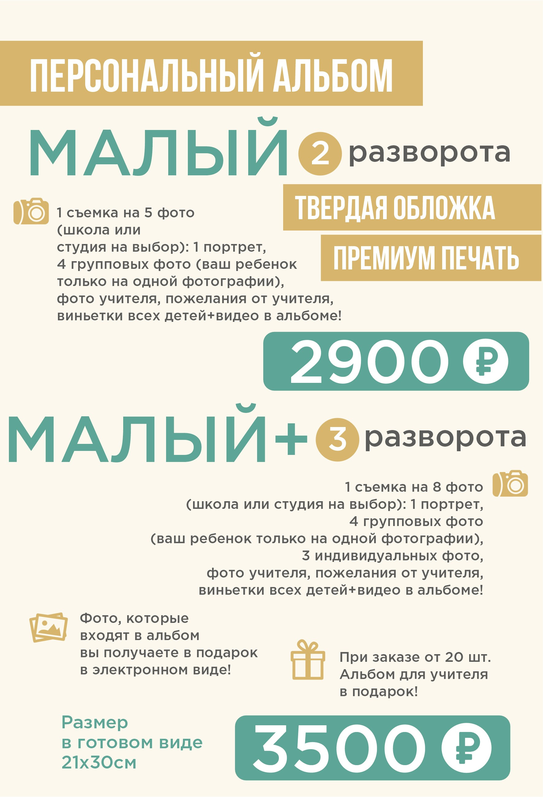 При заказе от 20 альбомов, альбом для учителя и организатора идет в подарок!